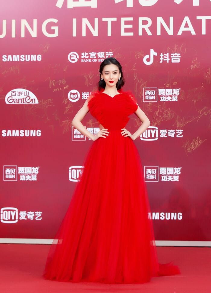 Angelababy trở thành tâm điểm vừa qua khi mặc bộ váy Dior 'kén dáng' tỏa sáng tại lễ khai mạc LHP Quốc tế Bắc Kinh lần thứ 11. Trong kiểu váy Dior đỏ rực mà Angelababy khoác trên mình, nữ diễn viên xuất hiện tại thảm đỏ LHP Quốc tế Bắc Kinh thu hút sự chú ý của cánh truyền thông.