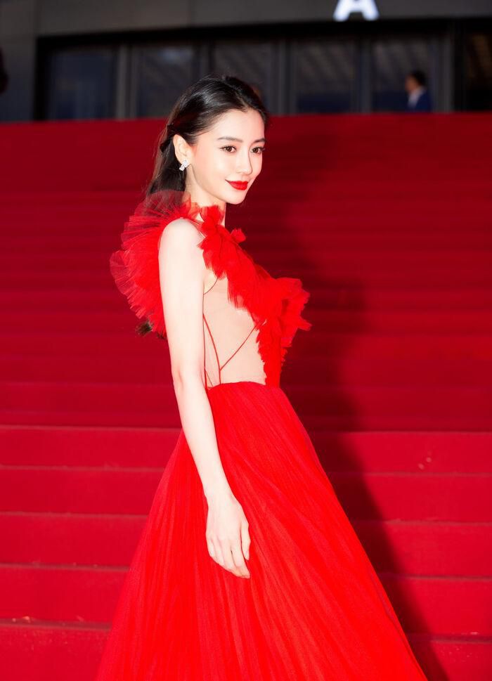Angelababy khoác trên mình bộ váy màu của tình yêu xuất hiện trên thảm đỏ, vừa gợi cảm vừa dễ thương, đậm màu cổ tích