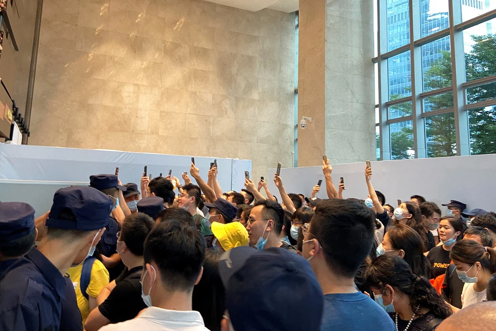 Hơn trăm người kéo tới trụ sở của Evergrande đòi thanh toán nợ. Ảnh: Reuters