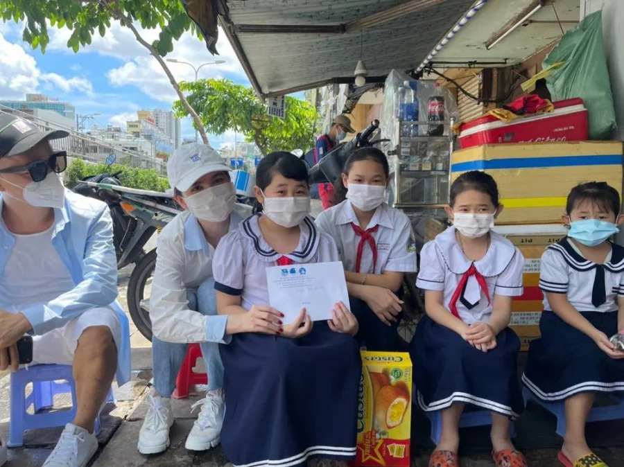 Không ngại khó khăn và dịch bệnh trong thời điểm này, người mẫu 31 tuổi đã đến tận nhà của những em nhỏ có hoàn cảnh không may mắn, mất cha mẹ vì Covid-19.