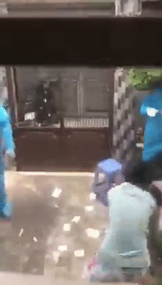 Quá bất lực trước thái độ của 3 người kia, 2 nhân viên mặc đồ bảo hộ nhanh chóng rời đi sau đó mà không muốn ở lại đôi co. Đặc biệt, một trong 2 nhân viên lấy mẫu bị giật rách hết đồ bảo hộ, khẩu trang, kính chắn giọt bắn cũng rơi mất.