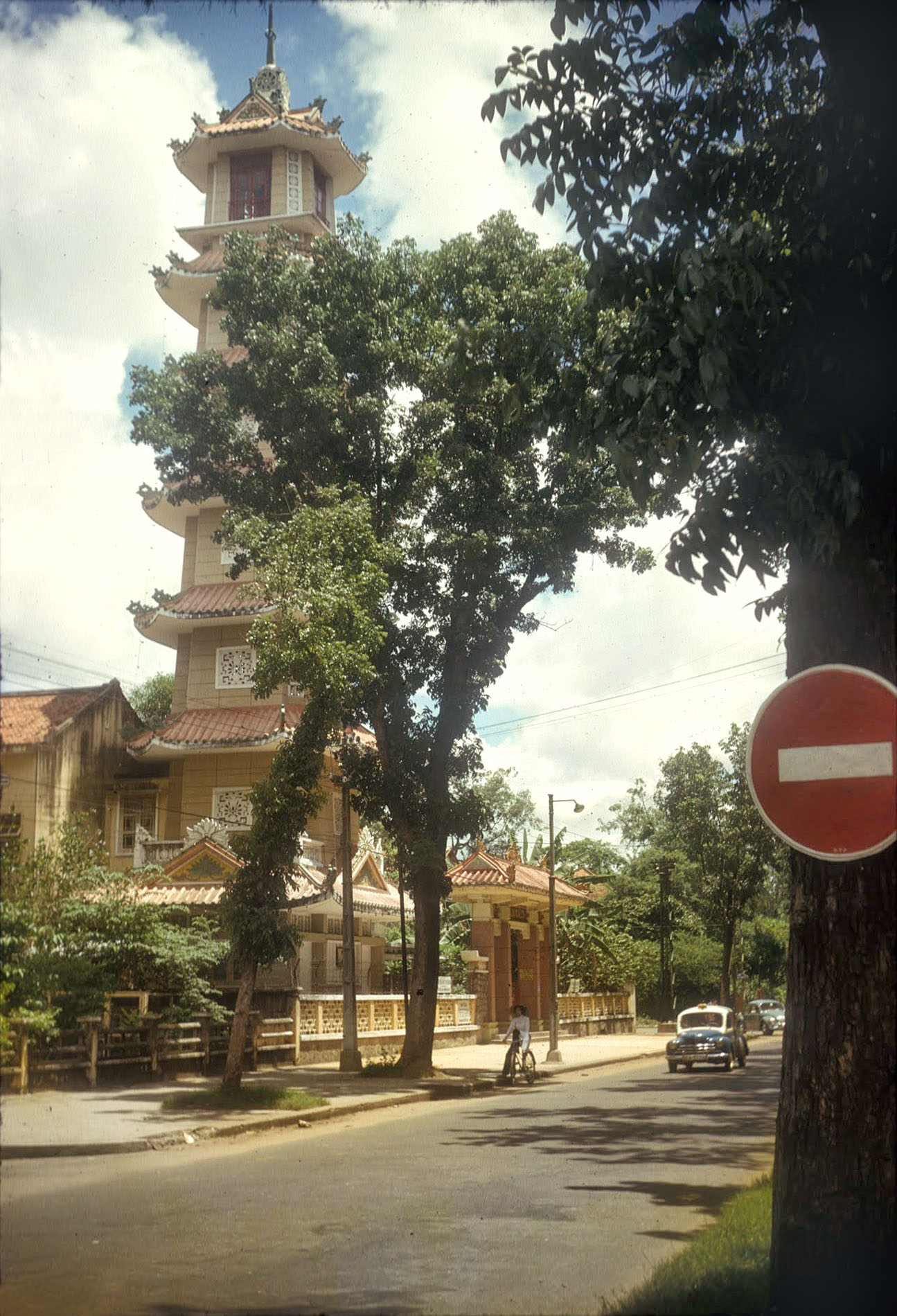 Chùa Xá Lợi nhìn từ bãi đậu xe của cơ quan USOM (United States Operations Mission) của Mỹ trên đường Ngô Thời Nhiệm năm 1970