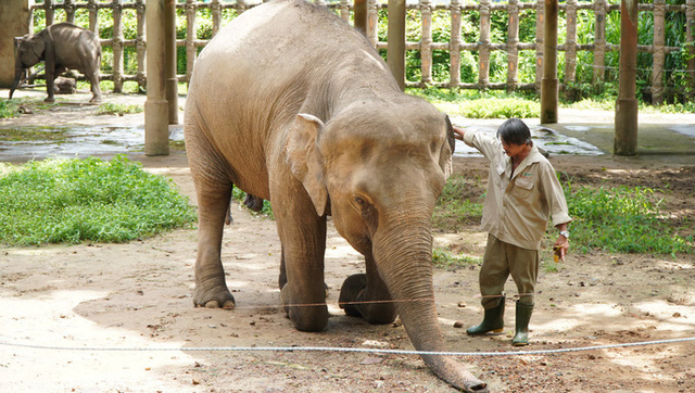 Anh Đỗ Thanh Hải đang huấn luyện voi