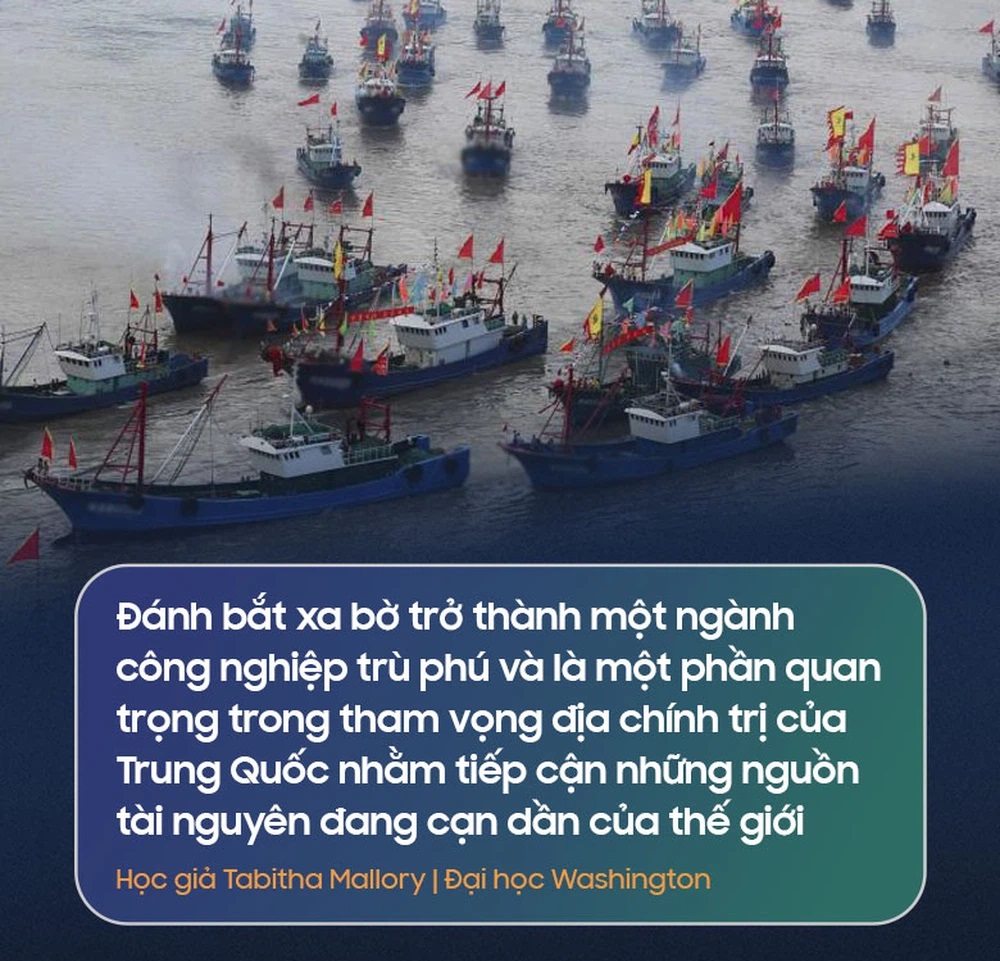 Đội tàu cá xa bờ của Trung Quốc được thành lập từ những năm 1980 để xử lý tình trạng cạn kiệt nguồn cá ở quê nhà và nhằm đáp ứng nhu cầu nuôi sống lượng dân số tăng nhanh.
