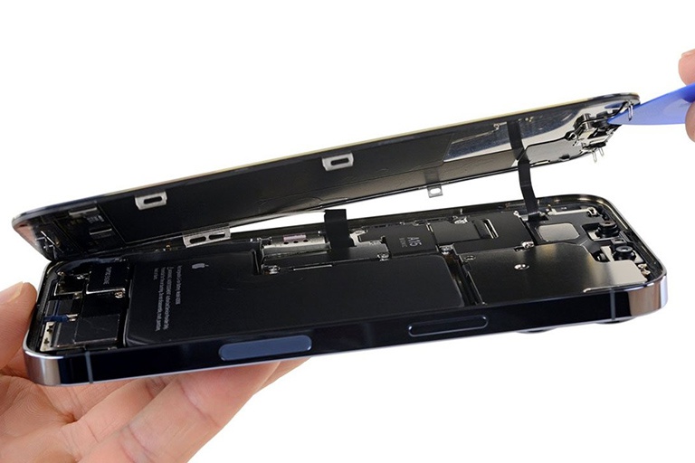iFixit đã tiến hành tháo dỡ iPhone 13 Pro cho thấy máy đi kèm pin khủng, camera TrueDepth được cải tiến và các chỉnh sửa nhỏ đối với bố cục bên trong điện thoại.Theo AppleInsider, giống như iPhone 13 và nhiều mẫu trước đó, iPhone 13 Pro được dán kín bằng chất kết dính và cáp màn hình của nó một lần nữa được bố trí ở phía bên trái của khung máy. Những sợi cáp này gắn với một bảng logic cứng được dịch chuyển lên trong hộp để chứa pin hình chữ L - một thiết kế "vay mượn" từ iPhone 12 Pro Max.