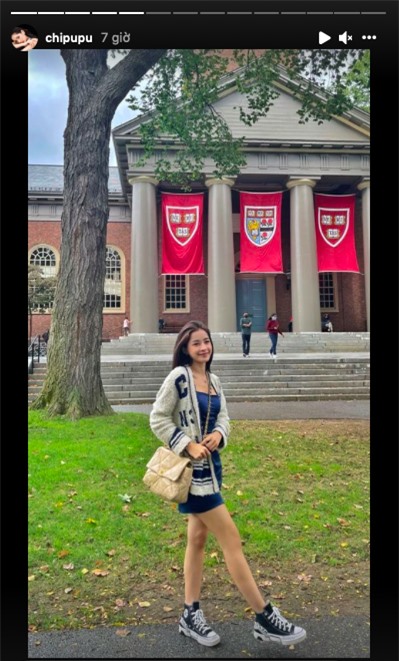 Cô còn khoe ảnh đến Đại học Harvard, ngôi trường danh tiếng bậc nhất thế giới. Thêm một nghi vấn đó là có phải nữ nghệ sĩ gấp rút sang Mỹ để tiếp phát triển sự nghiệp học hành hay không. Bên dưới bài đăng của Chi Pu, nhiều khán giả để lại bình luận thắc mắc về thời gian Chi Pu sang Mỹ là khi nào nhưng cô không trả lời.
