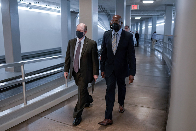 Các Thượng nghị sĩ Mỹ di chuyển trong hệ thống tàu điện ngầm dưới Tòa nhà Quốc hội Mỹ. Ảnh: Reuters