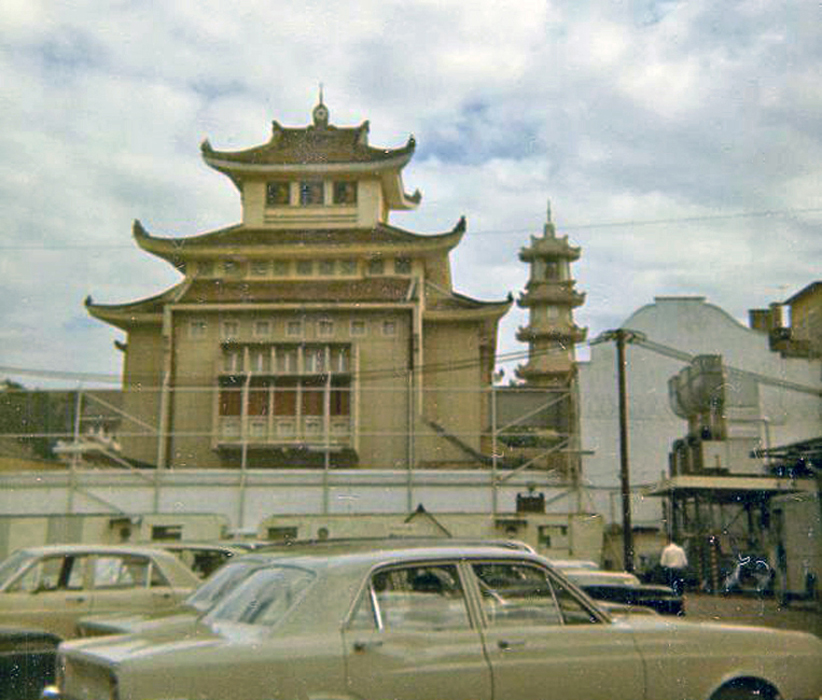 Chùa Xá Lợi nhìn từ bãi đậu xe của cơ quan USOM (United States Operations Mission) của Mỹ trên đường Ngô Thời Nhiệm năm 1970