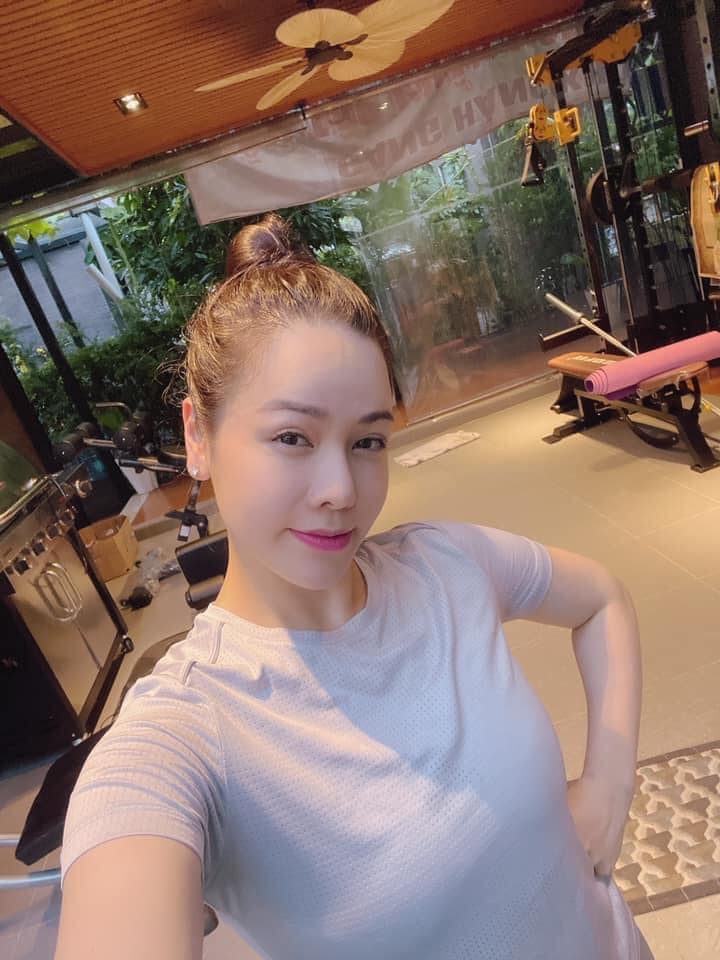 Nhật Kim Anh chăm chỉ rèn luyện thể thao ngay cả khi ở nhà.