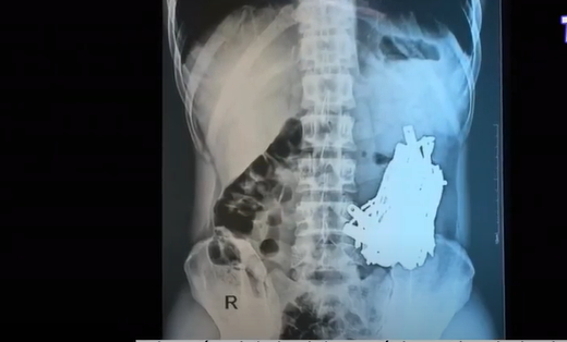 Những hình ảnh chụp X-quang dạ dày của bệnh nhân cho thấy nhiều mảnh kim loại, trong đó một số có chiều dài lên đến 10cm.