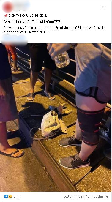 Theo hình ảnh đang chia sẻ trên MXH, cô gái để lại túi xách, một đôi giày, điện thoại và 100k trên cầu rồi gieo mình xuống sông Hồng.