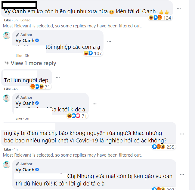 Không những vậy, nữ ca sĩ còn tỏ ra vô cùng bức xúc trước phát ngôn của bà chủ Đại Nam với cố ca sĩ Phi Nhung. “Chị Nhung vừa mất còn bị kêu gào vu oan thì đủ hiểu rồi! Không còn lời gì để tả em à” , Vy Oanh chia sẻ.