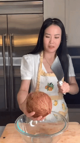 Có một cách lấy nước dừa đơn giản mà không cần phải dùng quá nhiều sức, vừa giúp bạn lấy được cả cùi dừa lẫn nước dừa.