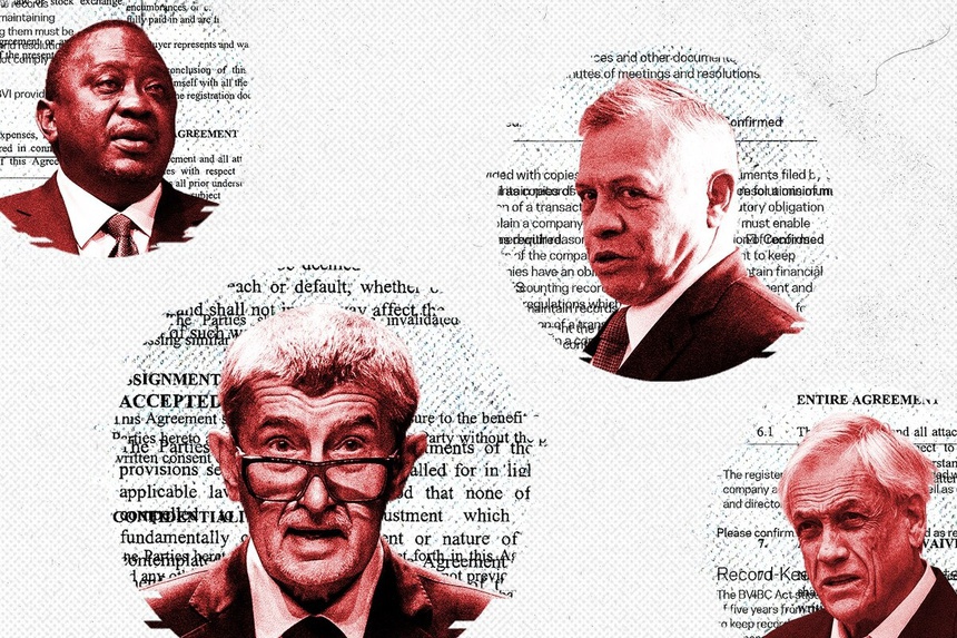(Từ trái sang) Tổng thống Kenya Uhuru Kenyatta, Vua Abdullah II của Jordan, Thủ tướng Cộng hòa Czech Andrej Babis, Tổng thống Chile Sebastián Piñera là những lãnh đạo có tên trong Hồ sơ Pandora. Ảnh: Washington Post.