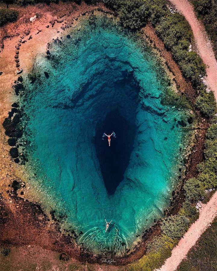 Nó được gọi là “Con mắt của Trái đất” do hình dạng rất giống với một con mắt với các sắc thái khác nhau màu xanh lam và xanh ngọc. Nhìn từ trên cao, đây chắc chắn là một trong những vẻ đẹp đặc biệt và hấp dẫn nhất của khu vực. Vẻ đẹp lộng lẫy của núi đá vôi tự nhiên này khiến tất cả du khách không thốt nên lời.