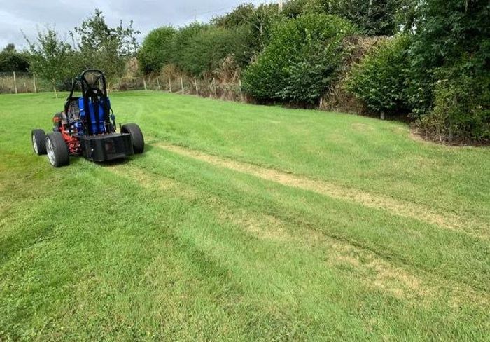 Không phải là một chiếc siêu xe, những hình ảnh dưới đây là của một máy cắt cỏ. Thật khó tin khi cỗ máy này vừa có thể cắt được cỏ mà vẫn đạt được tốc độ 230 km/h trên đường đua.