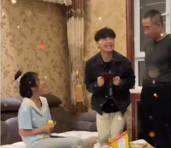 Một video ghi lại cảnh tượng hạnh phúc của một cặp đôi đã được chia sẻ lên mạng xã hội đã khiến nhiều người chú ý. Theo tìm hiểu, một cặp đôi đang ăn vặt và ngồi xem ti vi. Bất ngờ bố của cô gái tiến đến trước mặt chàng trai và đưa cho anh sổ hộ khẩu của nhà gái, kèm theo lời dặn dò: 'Sổ hộ khẩu rất quan trọng đấy'.