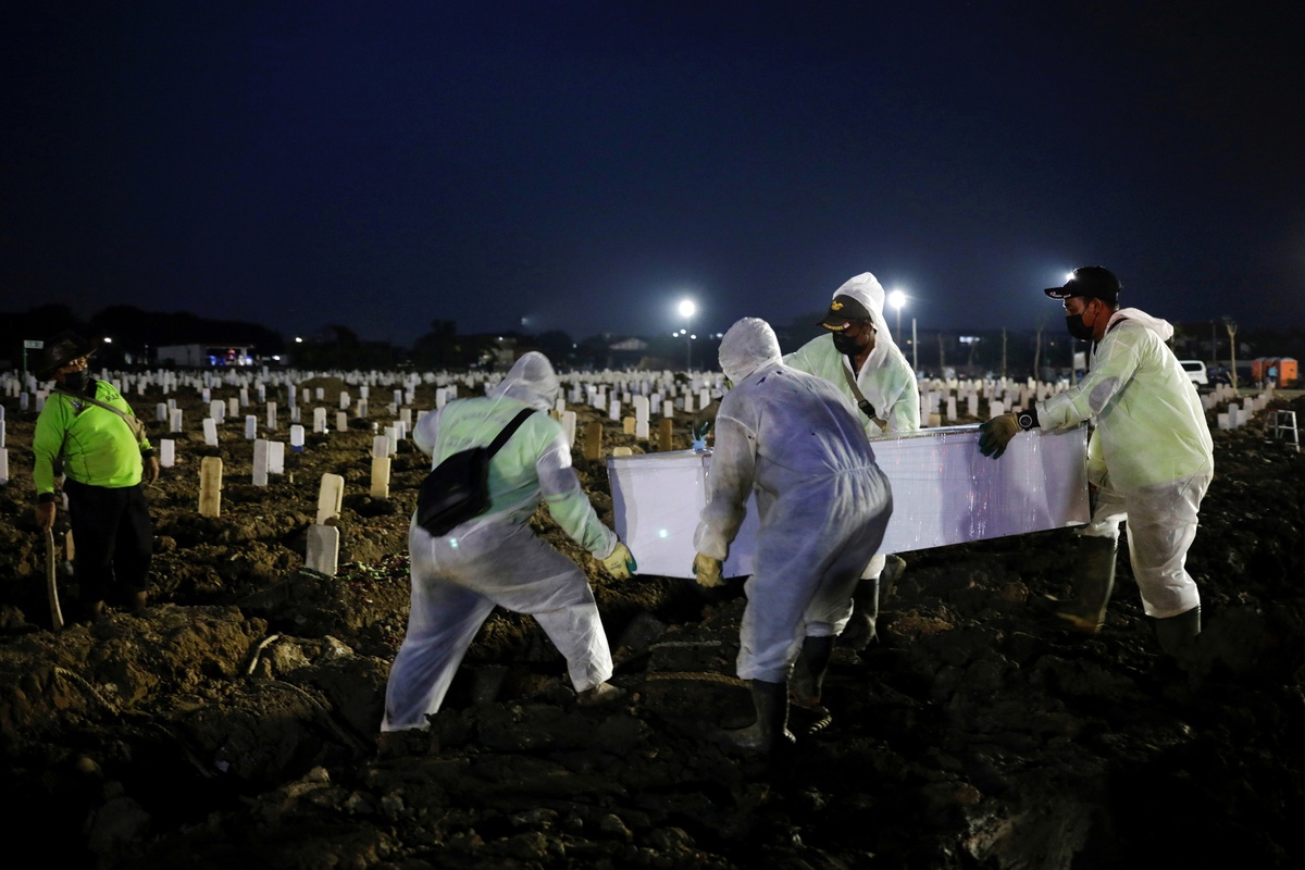 Chôn cất nạn nhân Covid-19 ở Jakarta, Indonesia, ngày 23/7. Ảnh: Reuters.