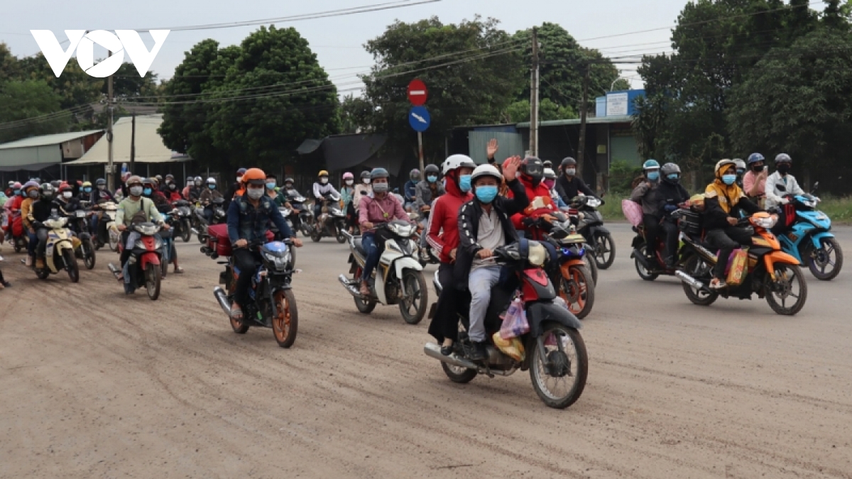 Tính đến ngày 9/10, có gần 66.000 người về quê qua địa bàn tỉnh Bình Phước và hơn 2.300 công dân Bình Phước “mắc kẹt” ở các tỉnh, thành đã trở về địa phương.Theo UBND tỉnh Bình Phước, từ khi TP.HCM, Bình Dương, Đồng Nai, Long An nới lỏng giãn cách, đã có một lượng lớn người dân Tây Nguyên, miền Trung, miền Bắc về quê đi qua tỉnh Bình Phước. Con số này được các ngành chức năng thống kê lên đến 66.000 người. Để hỗ trợ người dân đi xe máy về quê an toàn và phòng, chống dịch bệnh lây lan, các lực lượng chức năng Bình Phước đã tổ chức đoàn xe dẫn đường, người dân tham gia tiếp tế đồ ăn thức uống dọc đường. Những trường hợp đi bộ đến địa bàn tỉnh Bình Phước đã được bố trí xe khách đưa về Đăk Nông để tiếp tục hành trình về quê.