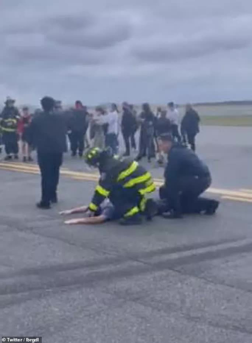 Người đàn ông nằm trên đường băng. Ảnh: Twitter