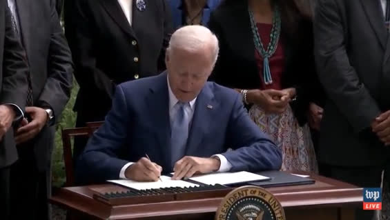 CHUYỆN QUA 3 BỨC ẢNH: Sau khi ho vào tay (không đúng hướng dẫn về đảm bảo y tế cộng đồng) trong 15 phút, ông Joe Biden đã ký các tài liệu bằng cùng tay đó, rồi đưa các chiếc bút cho nhiều người xung quanh.