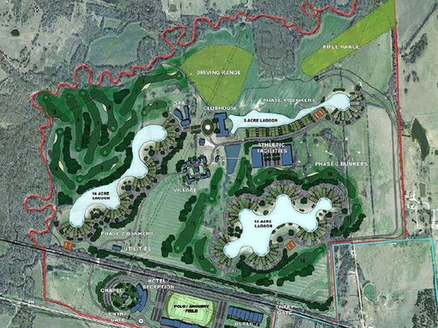 Khu hầm trú ẩn Trident Lakes được che chở bởi đầm phá, sân gôn... trên mặt đất