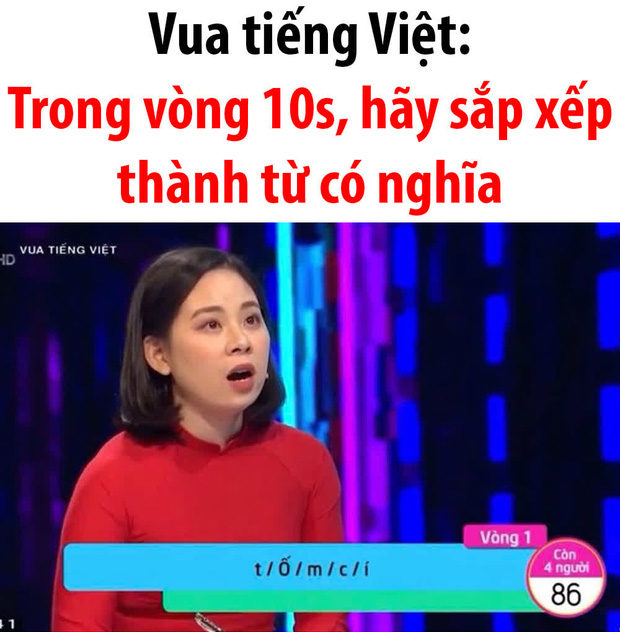 Cụ thể câu hỏi yêu cầu: "Trong vòng 10 giây hãy sắp xếp thành từ có nghĩa".