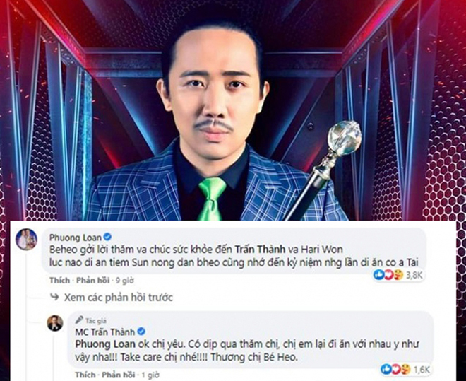 Đáng chú ý, dưới phần bình luận, bà xã của cố nghệ sĩ Chí Tài là ca sĩ Phương Loan đã để lại lời nhắn nhủ đến đàn em thân thiết: “Bé Heo gửi lời thăm và chúc sức khỏe đến Trấn Thành và Hari Won. Lúc nào đi ăn tiệm S.N.D, Bé Heo cũng nhớ đến kỷ niệm những lúc đi ăn có anh Tài!”. Theo đó, không chỉ gửi lời thăm hỏi vợ chồng Trấn Thành, ca sĩ Phương Loan còn xúc động khi nhắc lại kỷ niệm đáng nhớ những lần cùng đồng nghiệp và ông xã đi ăn. Trước lời nhắn nhủ chân thành của vợ nghệ sĩ Chí Tài, Trấn Thành nhiệt tình đáp lại và hứa hẹn sẽ có dịp cùng bà xã qua thăm “chị yêu”. Có thể thấy, vợ chồng Trấn Thành và bà xã cố nghệ sĩ Chí Tài có mối quan hệ thân thiết và luôn quan tâm lẫn nhau.