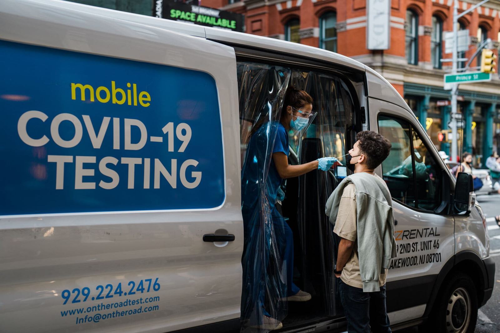 Xét nghiệm COVID-19 trên xe lưu động tại Manhattan, New York. Ảnh: NYT
