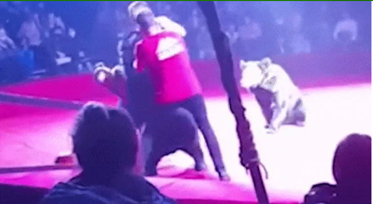 Gấu tấn công nghệ sĩ xiếc đang mang bầu. Tại Nga, một con gấu đực đã bất ngờ quay ra tấn công nữ nghệ sĩ xiếc thú đang mang bầu.