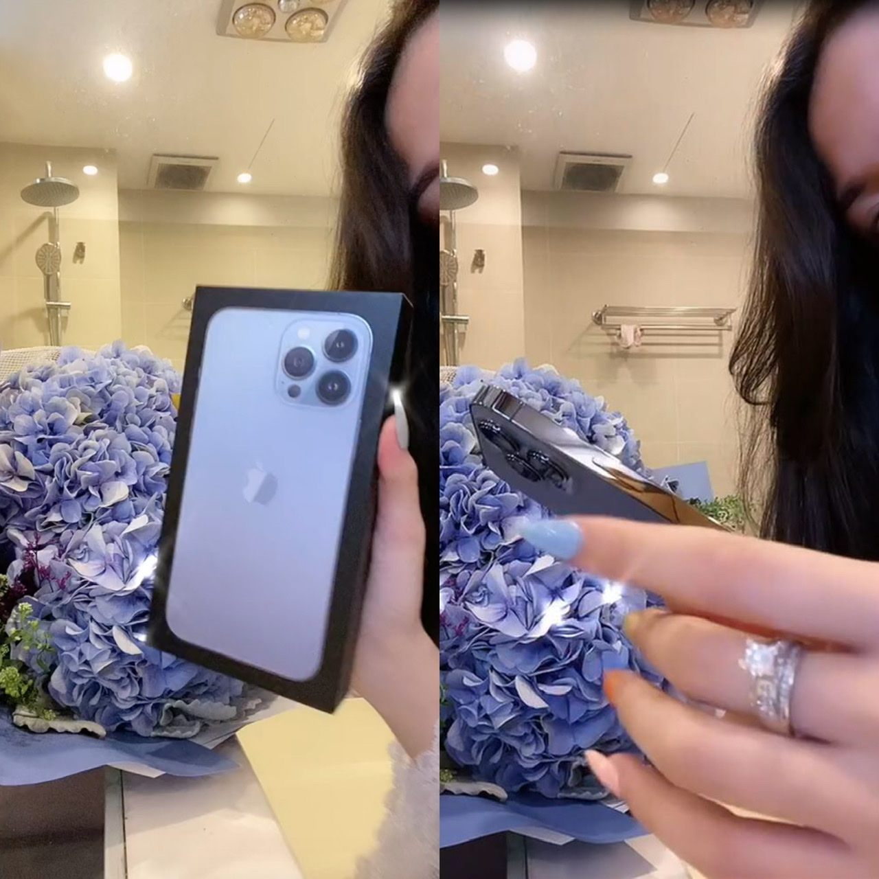 Anh Thư khoe iPhone 13 và nhẫn kim cương trên tay