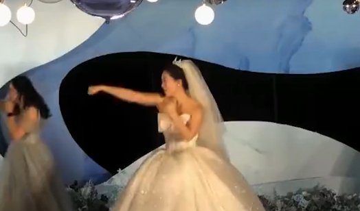 Đoạn video đăng tải trên mạng xã hội cho thấy, cô dâu đứng ở giữa trong chiếc váy cưới lộng lẫy, 2 phù dâu mặc váy xám đứng ở hai bên trên sân khấu đám cưới, cô dâu cùng 2 phù dâu cùng nhau thể hiện màn đấm boxing trong điệu nhạc.