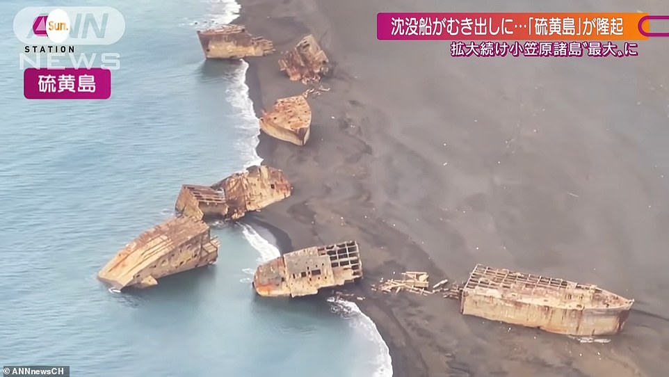 Theo như đáy biển đã bắt đầu trồi lên do địa chấn từ núi lửa Suribachi, đặc biệt là ở phần phía tây của hòn đảo. Kết quả của hoạt động là những con tàu bị chìm trồi lên mặt nước, nằm trên tro núi lửa, khiến hàng chục tàu bị đánh chìm trong trận Iwo Jima ác liệt nhất giữa Mỹ và Nhật Bản trong Thế chiến 2, gần đây trồi ở bãi biển.