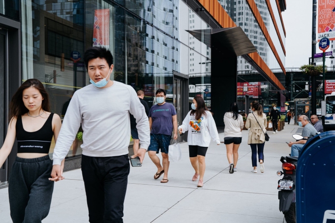 Người gốc Á đi lại trong khu dân cư Long Island City ở New York. Ảnh: NYTimes