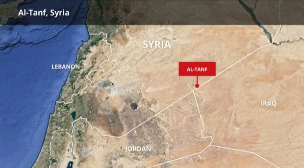 Vị trí của Al-Tanf ở biên giới giữa ba nước Syria - Iraq - Jordan.