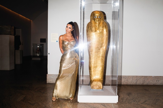 Mới đây, câu chuyện về chiếc váy vàng mà ngôi sao truyền hình thực tế Kim Kardashian mặc khi tới dự sự kiện thời trang Met Gala 2018 bất ngờ gây sốt với một tình tiết thú vị. Bức ảnh chụp Kim Kardashian đứng bên một chiếc quan tài vàng có từ thời Ai Cập cổ đại.