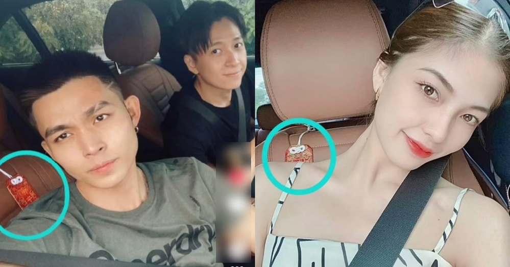 Cụ thể trên ghế lái phụ xe của Ngô Kiến Huy có treo một sợi dây với hoa văn đỏ, hình ảnh này giống với bức ảnh mà Uyên Endy từng đăng tải.