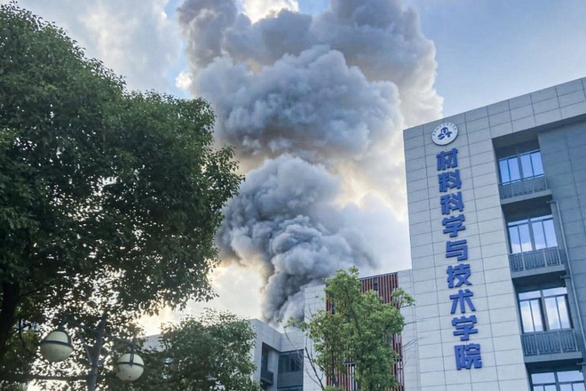 Khói bốc lên sau vụ nổ tại phòng thí nghiệm ở Đại học Hàng không vũ trụ Nam Kinh, Trung Quốc ngày 24/10. (Ảnh: Weibo).