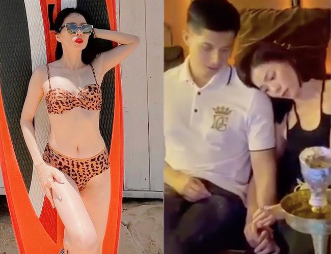 Video "quay lén' còn cho thấy tình cảm giữa Lệ Quyên và tình trẻ Lâm Bảo Châu.