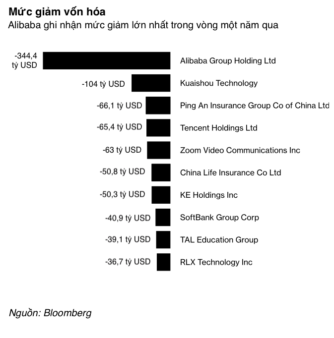 Vốn hóa của Alibaba đã bốc hơi 344 tỷ USD sau một năm, mức sụt giảm lớn nhất trên toàn cầu.