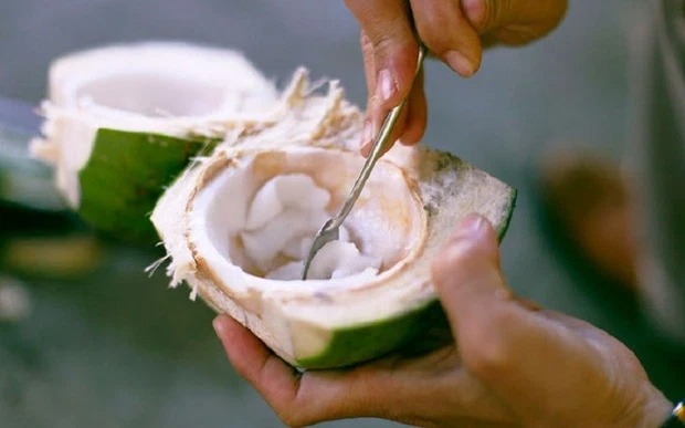 - "Ý nhà sản xuất là phần cùi dừa màu trắng á mọi người!"