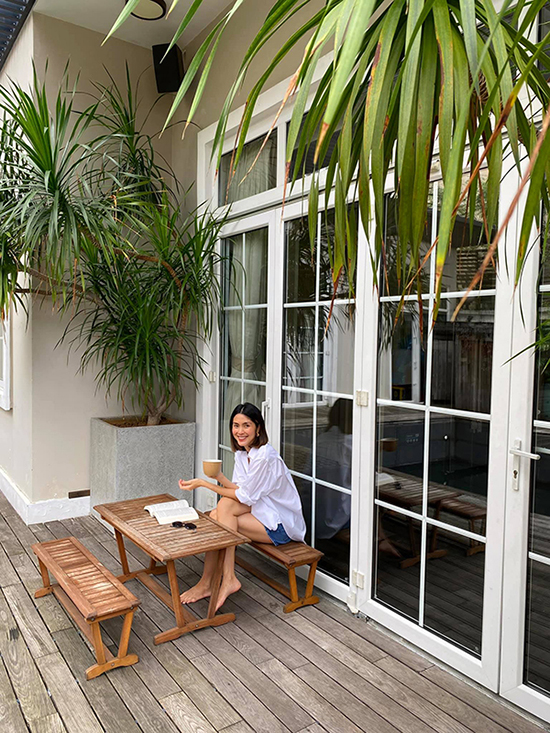 Trong ngày sinh nhật 35 tuổi, Tăng Thanh Hà tự tin khoe mặt mộc khi ngồi trước hiên nhà tận hưởng giây phút thảnh thơi.