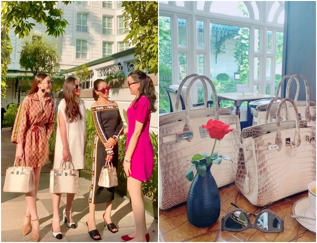 Chiều 21/10, Lệ Quyên gây chú ý khi đăng tải hình ảnh đi chơi cùng nhóm bạn lên mạng xã hội. Đáng chú ý là 3 túi hiệu đắt đỏ của Lệ Quyên cùng hội bạn thân. Chiếc túi Hermès Birkin da cá sấu "bạch tạng" được đánh giá là rất hiếm và giá của chúng đang tăng lên từng ngày. Giá trị của những chiếc túi Birkin bạch tạng bán lẻ là 300.000 USD (khoảng 6,8 tỷ đổng).