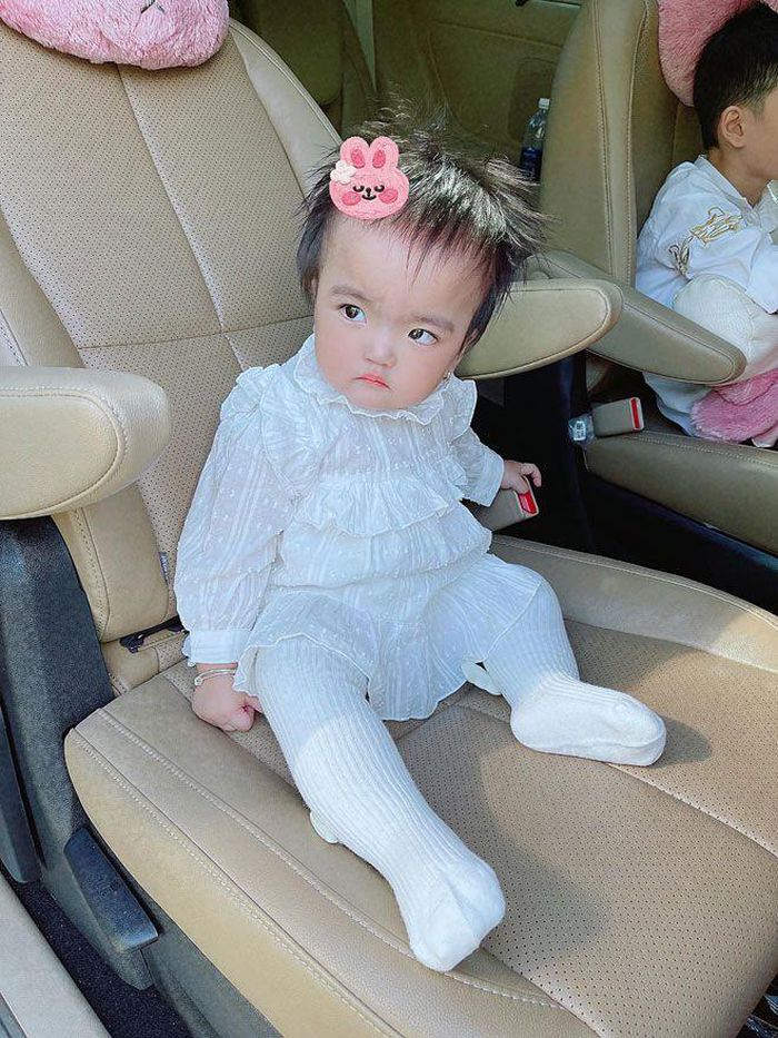 Tiểu công chúa được bố mẹ khoe ảnh thường xuyên lên mạng xã hội với những bộ quần áo xinh đẹp, trang điểm bằng phụ kiện cầu kì như kẹp tóc, nơ, tóc giả...