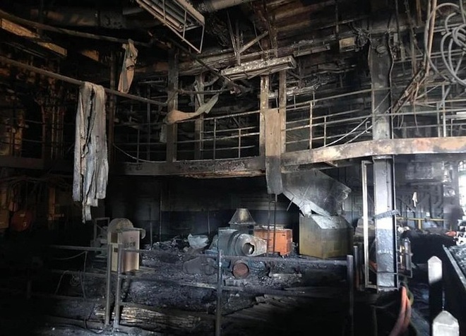 Nhiều khu vực của tàu bị cháy trơ khung sau 4 ngày chìm trong "biển lửa" (Ảnh: Reuters).
