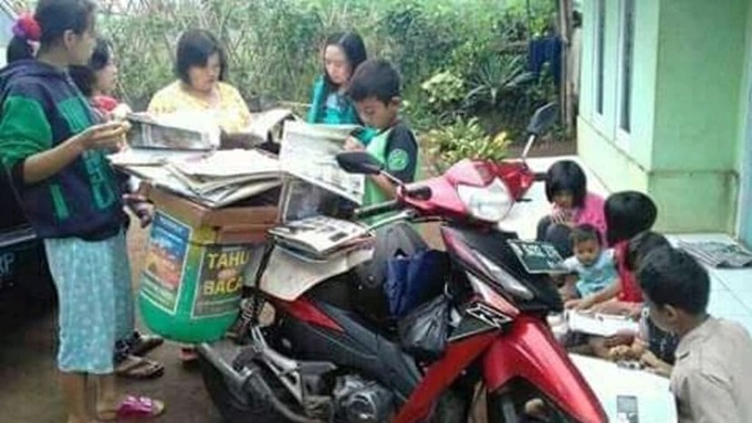 6h hàng ngày, khi hừng đông vừa tỏa ra những tia sáng đầu tiên phủ lên ngôi làng Pasirhuni ở Tây Java, Rudiat, 43 tuổi, đã bận rộn phân loại những cuốn sách. Người đàn ông bán đậu phụ xếp hàng chục cuốn sách vào hai chiếc hộp phía sau xe máy, cùng với thùng đậu, hướng về những ngôi làng hẻo lánh ở quận Cimaung.
