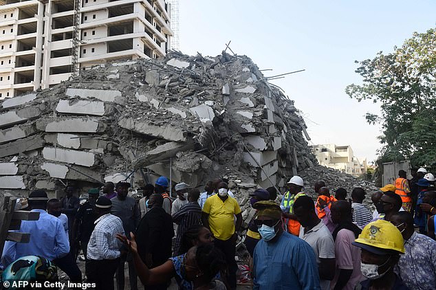Một tòa nhà chung cư cao 25 ​​tầng đang được xây dựng trong một khu vực cao cấp của Nigeria Thành phố lớn nhất của thành phố đã sụp đổ với hơn 100 công nhân lo sợ bị mắc kẹt dưới đống đổ nát.