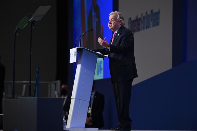 Tại phiên khai mạc hội nghị thượng đỉnh COP26 ở Glasgow ngày 1/11, tổng thư ký Liên Hợp Quốc Antonio Guterres nói với các lãnh đạo thế giới rằng "chúng ta đang đào mồ cho chính mình". Ông còn nhấn mạnh rằng thế giới phải hành động ngay lập tức tại hội nghị khí hậu COP26 này để ngăn chặn thảm kịch đó, theo CNN.
