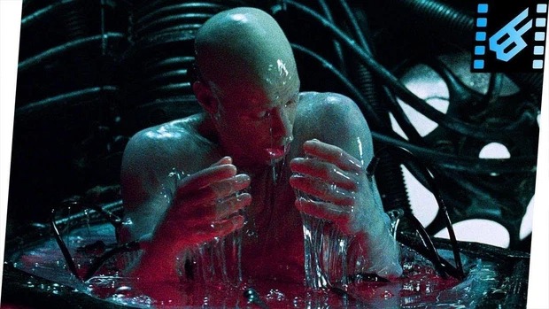 Neo (nhân vật chính) tỉnh dậy trong ống trụ đầy chất lỏng ở thế giới thực ngoài Ma trận