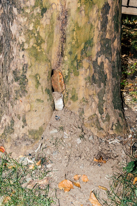 Người dân nhét đá vào hốc cây để tránh chuột làm ổ. Ảnh: New York Times.